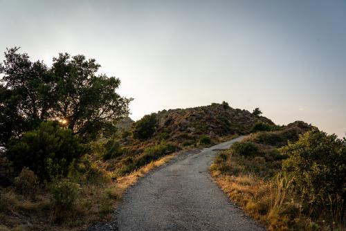 Le chemin serpente le long de la crête et l’objectif n’est visible que tardivement dans la montée. Au gré des virages et de la végétation vous pourrez admirer les paysages des deux côtés de la crête. Côté mer, aux premiers plans les célèbres vignobles de Collioure et Banyuls. Plantés à flan de montage en escaliers au milieu desquelles quelques routes et chemins agricoles serpentent. Au loin la côte rocheuse et sinueuse se dessine comme trame de fond. Côté terre, le paysage est plus sauvage. Peu de constructions. Seules les montages se détachent sur l’horizon.
