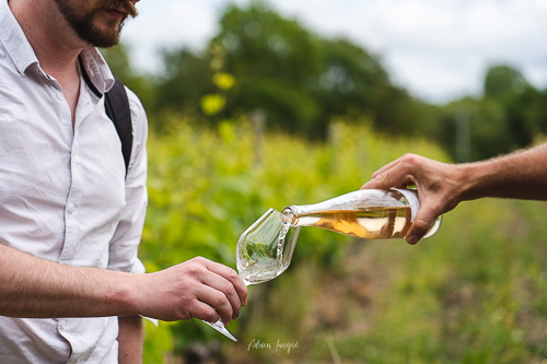 Première étape de notre balade le domaine agricole de Nicolas Ferré et sa femme. Une exploitation familiale créée en 1887 et qui a la particularité d’être l’exploitation la plus occidentale de France. Les 15 hectares sont plantés en bord de mer sur un plateau en pente vers la baie de Bourgneuf. Ainsi les vignes bénéficient de conditions particulières qui apportent une note iodée au vin.